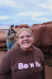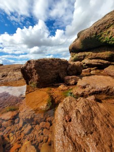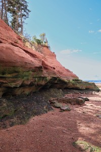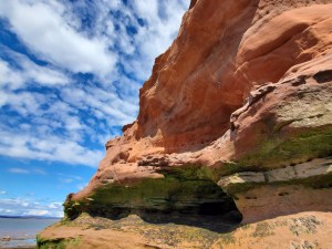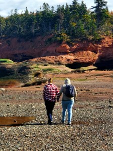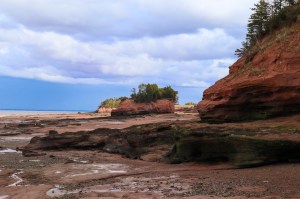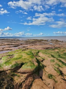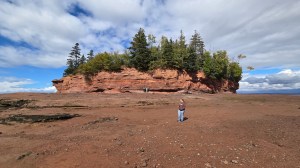 The next day we made our way up to Burntcoat Head park. This park is recorded to have the highest tides in the world. The tides at Burntcoat Head Park have an average height of 47.5 feet (14.5 m) and an extreme range of 53.6 feet (16.3 m). It is about a 2 hr drive from our place. The views were stunning as we drove down into the valley, such beautiful fall colours! At one point we were concerned that we might get caught in a bit of rain (that we didnât dress for), but it stayed on the other side of the Bay until we were done exploring the park. The park was amazing! Give me a good summer day, and I could have stayed there until the tide pushed me back to dry land. Itâs a whole other world exploring the ocean floor and the areas around the cliffs. So cool! A definite “must see” for anyone visiting.