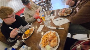 Thankfully, the rain held out until we had finished exploring. Rain drops started falling the minute we had gotten to our car! At this point the crew’s stomachs were starving and ready for some lunch. We ended up finding a good spot in Windsor called âWalkers Restaurant.â And boy, was the food delicious! đ¤¤